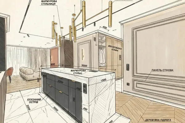 Менеджер і дизайнер спілкуються з вами, проводять обміри приміщення та обговорюють ваші побажання щодо стилю, функціональності та бюджету.